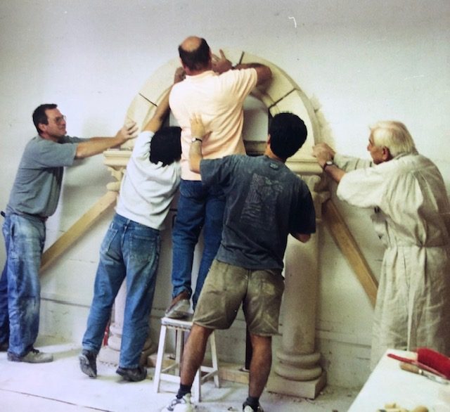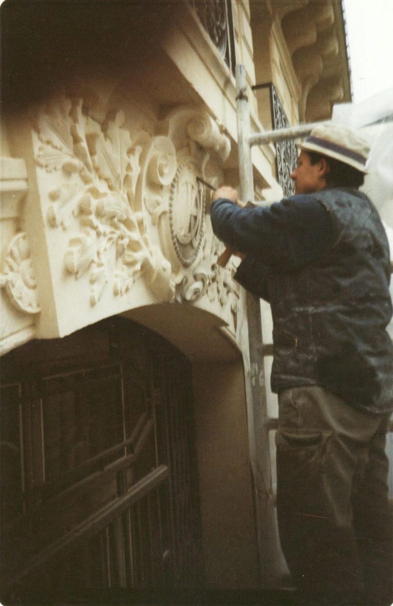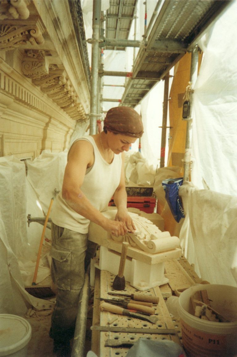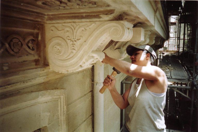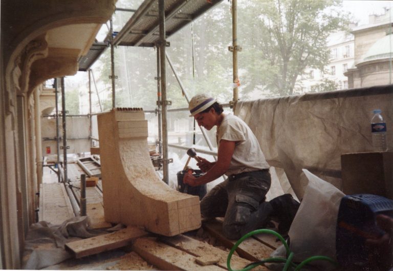 Son atelier œuvre pour la restauration des Monuments historiques et la transmission des savoir-faire du Patrimoine.