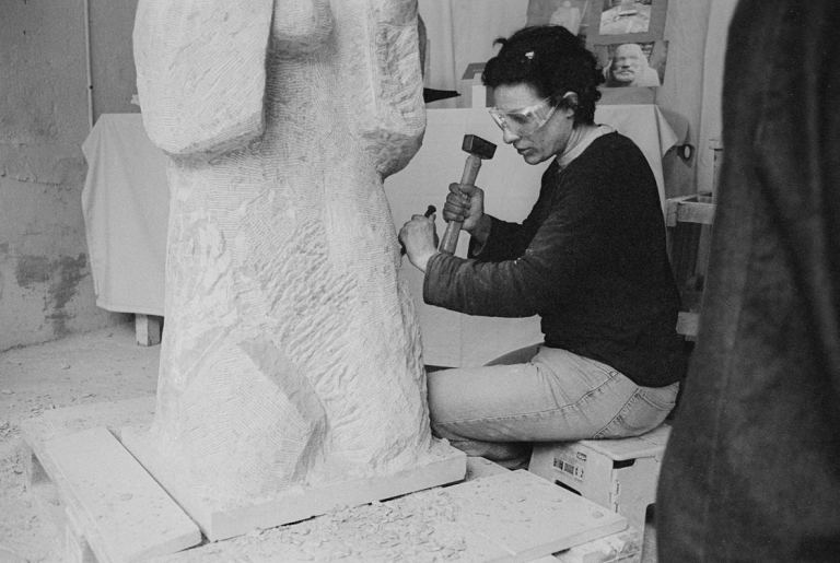 Parallèlement je poursuis ma démarche personnelle au sein d' "Habilis", un collectif d'artistes sculpteurs pierre et bois en taille directe, dans leur atelier de Vincennes. Je les rencontre par l'intermédiaire d'une amie; Valerie Tatin, elle aussi tailleur de pierres et sculptrice.