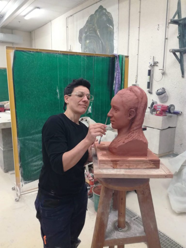 En 2020 je participe à la réalisation d'un buste destiné à la galerie tactile du Louvre. Ce buste sera moulé en plâtre puis sculpté en marbre et en calcaire ferme par l'équipe . Je modèle la terre pour faire une matrice en m'inspirant de la Marie-Anne Collot de Falconnet.